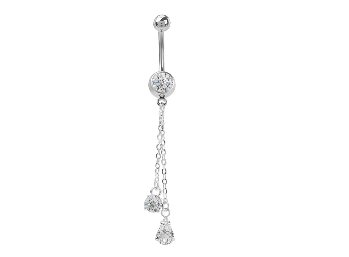 Glimmer Drop Belly Ring with Crystal Dangle Design